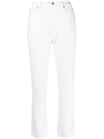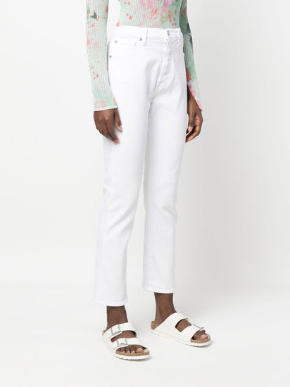 cropped slim-fit jeans from 7 FOR ALL MANKIND featuring white, cotton blend, concealed fly and button fastening, belt loops, classic five pockets and cropped leg. Slim fit denim jeans Size and Fit - This piece fits true to size. We recommend you get your regular size. Model is 1,75m / 5ft 8in wearing size 27 (WAIST CM)