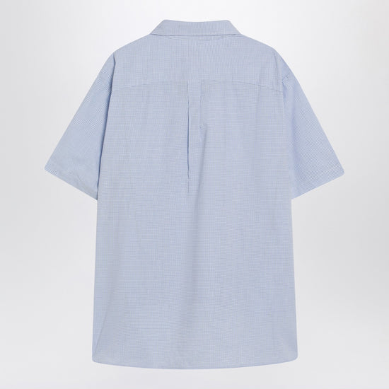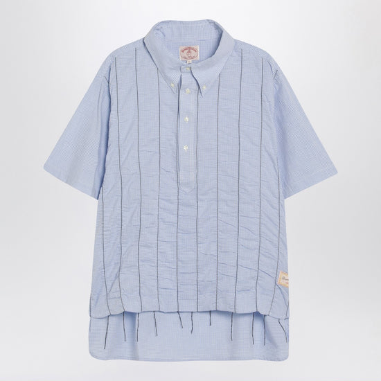Brain Dead shirt T-shirt in collaboration with Brooks Brothers in blue checked and striped cotton, featuring button-down collar, short sleeves, half front button placket, front logo patch and curved hem.