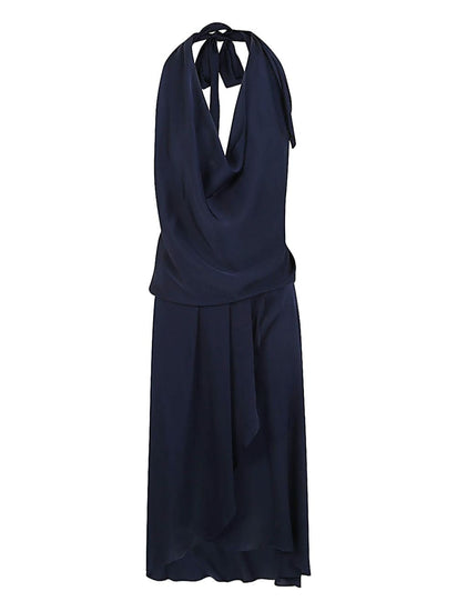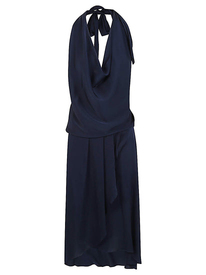 Blue dress, with back closure, backless, with skirt. Worth Ave silk short dress Size and Fit - This piece fits true to size. We recommend you get your regular size. Model is 1,75m / 5ft 8in wearing size S