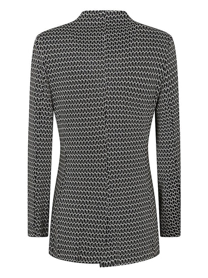 Jacket made of viscose with all-over multicolor print, V-neck, front button closure, two front patch pockets, straight hem. Printed single-breasted jacket Size and Fit - This piece fits true to size. We recommend you get your regular size. Model is 1,75m / 5ft 8in wearing size 36 (ES)