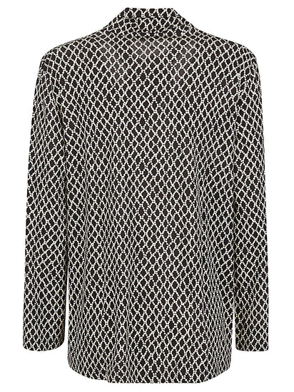 Black shirt, V -neck, neck laces. Printed blouse Size and Fit - This piece fits true to size. We recommend you get your regular size. Model is 1,75m / 5ft 8in wearing size 36 (ES)