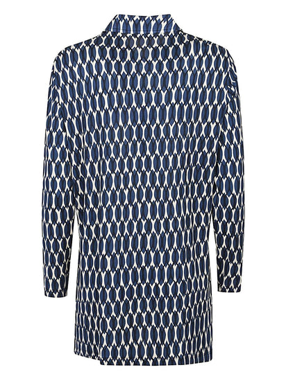 Shirt made of viscose, multicolor, polo collar, front button closure, long sleeves, side slits, straight hem, relaxed fit. Printed shirt Size and Fit - This piece fits true to size. We recommend you get your regular size. Model is 1,75m / 5ft 8in wearing size 36 (ES)