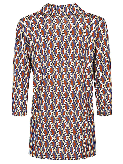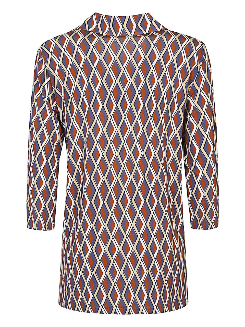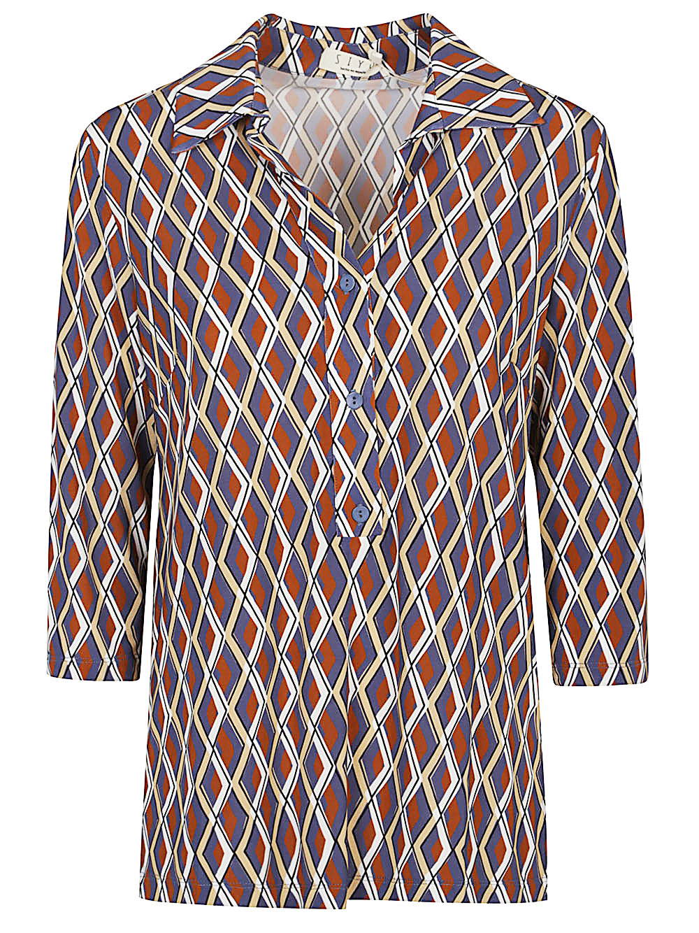 Shirt made of viscose, multicolor, polo collar, front button closure, 3/4 sleeves, side slits, straight hem, relaxed fit. Selma blouse Size and Fit - This piece fits true to size. We recommend you get your regular size. Model is 1,75m / 5ft 8in wearing size 36 (ES)