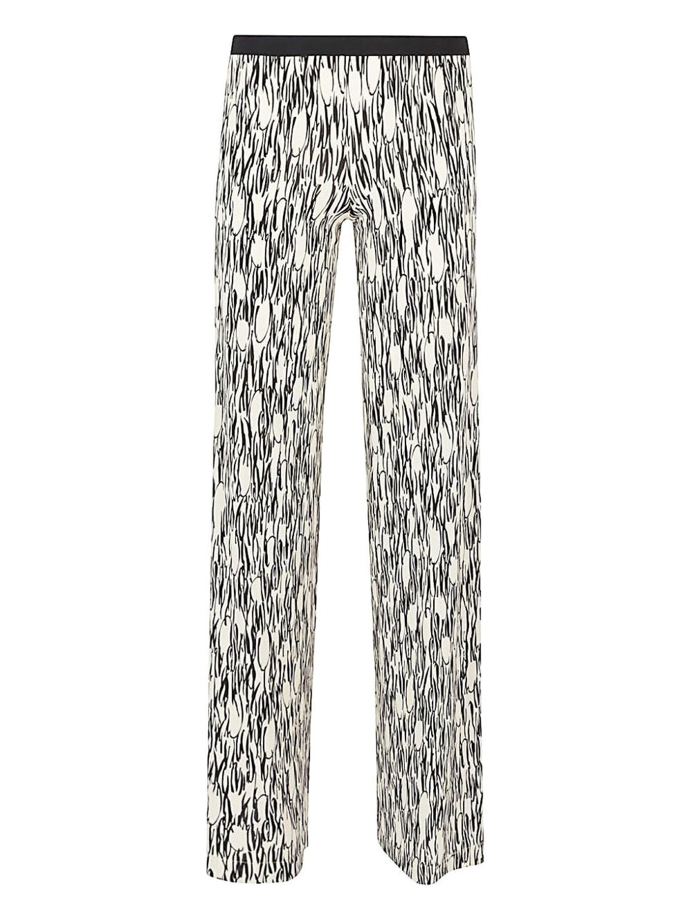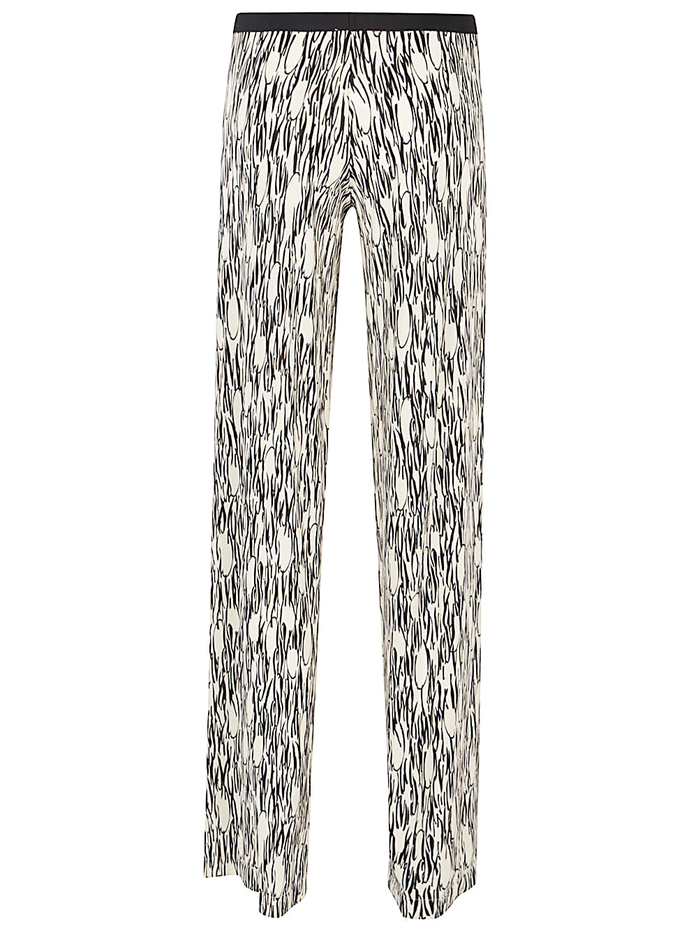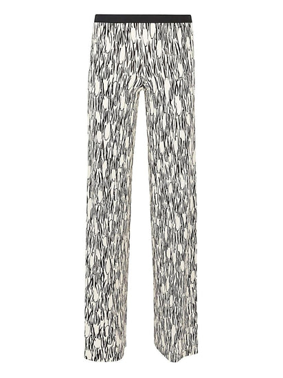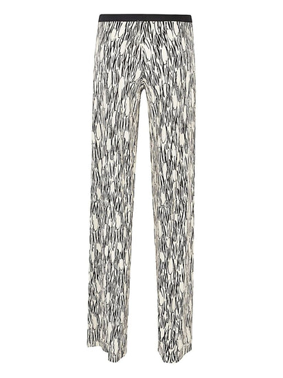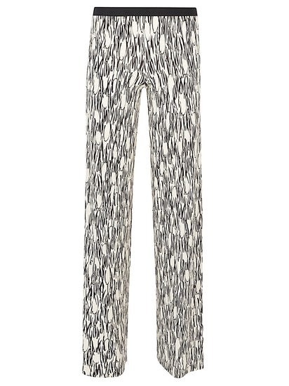 Palazzo trousers with all-over multicolor print, elastic waist, no pockets, straight hem. Printed trousers Size and Fit - This piece fits true to size. We recommend you get your regular size. Model is 1,75m / 5ft 8in wearing size 36 (ES)