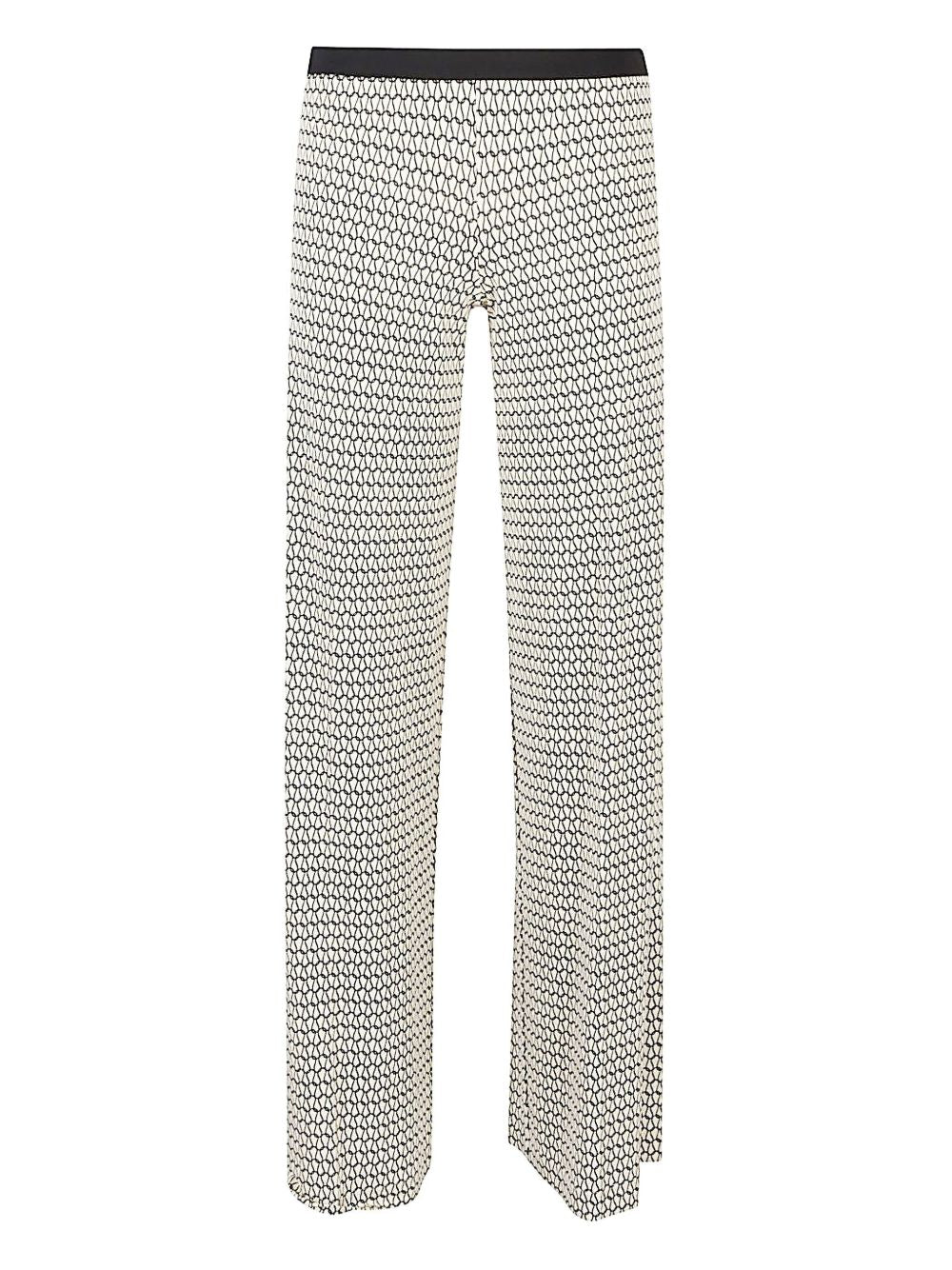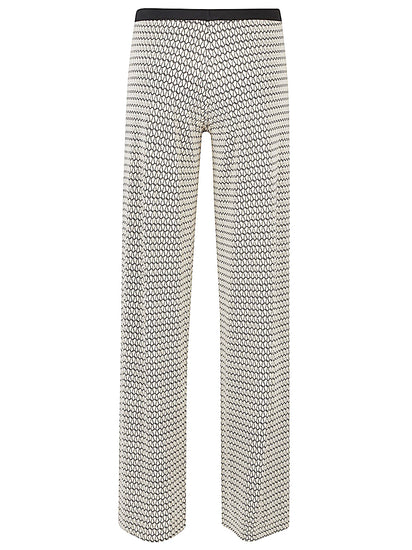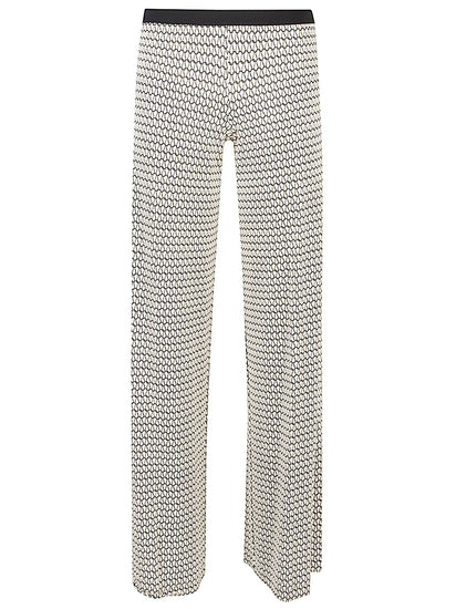 Palazzo trousers with all-over multicolor print, elastic waist, no pockets, straight hem. Printed trousers Size and Fit - This piece fits true to size. We recommend you get your regular size. Model is 1,75m / 5ft 8in wearing size 36 (ES)