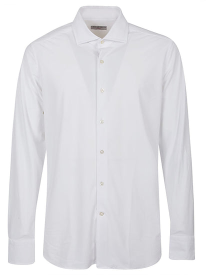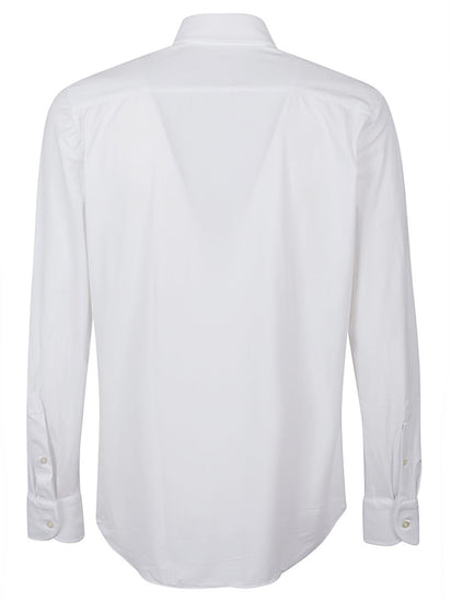 White shirt, buttons closure, high collar. Long-sleeves shirt Size and Fit - This piece fits true to size. We recommend you get your regular size. Model is 1,84m / 6ft 1in wearing size 39 (COLLAR CM)