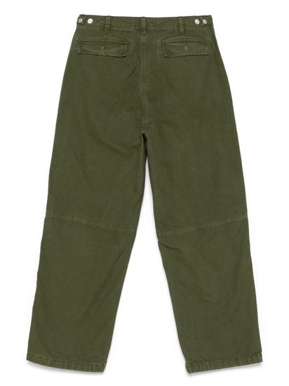 olive green concealed fly and button fastening belt loops two side slash pockets two rear flap pockets Cotton trousers Size and Fit - This piece fits true to size. We recommend you get your regular size. Model is 1,84m / 6ft 1in wearing size 32 (WAIST CM)