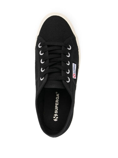 Black cotton lace-up low-top sneakers from SUPERGA featuring logo patch to the side, round toe, front lace-up fastening and flat rubber sole. 2750 Cotu Classic sneakers Size and Fit - Heel 1,2 in / 3 cm; Platform 1 in / 2,5 cm
