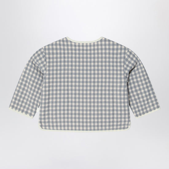 Teddy & Minou round-neck jacket in cotton blend with white and grey Vichy pattern, featuring front button closure, two applied pockets on the front, long sleeves, and logo tag on the side.