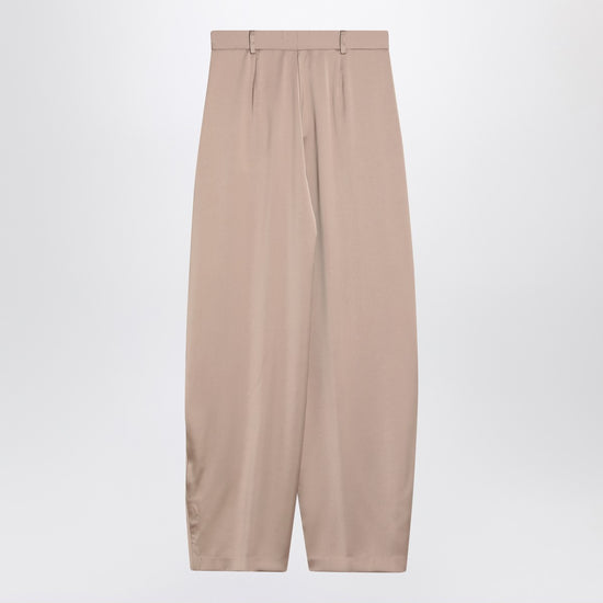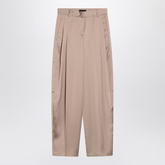 Wide trousers from The Andamane satin greige, featuring a high waist with belt loops, two side welt pockets, front pleats and a front zip and hook fastening. Size and Fit - Model wears size 38 IT Model measurements: Height: 179 cm Chest: 82 cm Waist: 65 cm Hips: 90 cm