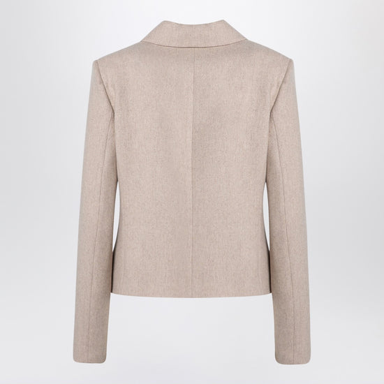 Beige wool blend double-breasted jacket from The Garment featuring long sleeves, classic lapels, a front button placket, a welt pocket on the chest and between flap pockets on the front. Size and Fit - Model wears size 8 UK Model measurements: Height: 179 cm Chest: 82 cm Waist: 65 cm Hips: 90 cm