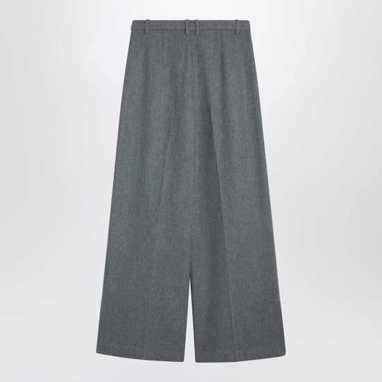 Grey wool blend trousers from The Garment featuring a front zip and hook-and-eye fastening, waist loops, two side welt pockets, bottom slits, front pleats and an oversized fit. Size and Fit - Model wears size 8 UK Model measurements: Height: 179 cm Chest: 82 cm Waist: 65 cm Hips: 90 cm