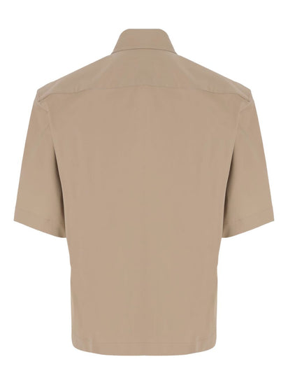 Beige shirt, short sleeves, jewel button closure, straight hem. Ben cotton shirt Size and Fit - This piece fits true to size. We recommend you get your regular size. Model is 1,75m / 5ft 8in wearing size S
