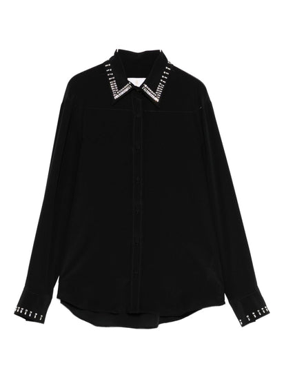 black crystal-embellished collar and cuffs long sleeves button fastening point collar Cotton shirt