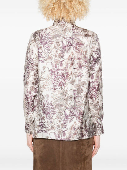 white silk floral print long sleeves button fastening high neck Printed silk shirt