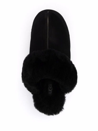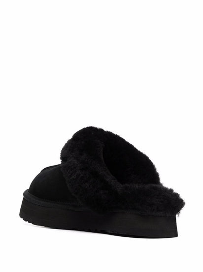 black suede shearling lining round toe branded insole slip-on style ridged rubber sole Disquette slippers
