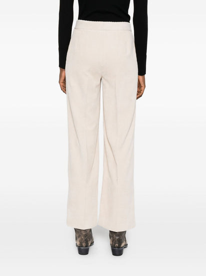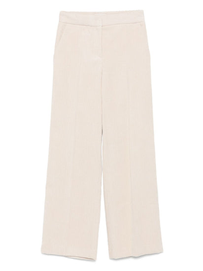 beige ribbed texture concealed fastening side-pockets Velvet trousers
