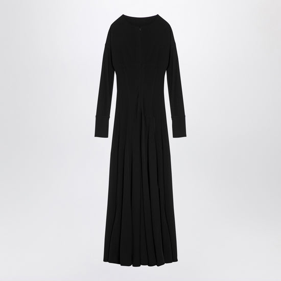 Black viscose dress by Victoria Beckham features long sleeves, cut-out front, front slit and back zip fastening. Size and Fit - Model wears size 8 UK Model measurements: Height: 179 cm Chest: 82 cm Waist: 65 cm Hips: 90 cm