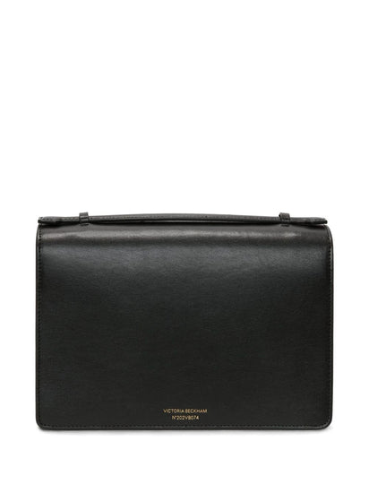 black foldover top with magnetic fastening flat top handles single shoulder strap partitioned compartment Dorian leather shoulder bag Size and Fit - DEPTH: 8.5 Centimetres. HEIGHT: 16.5 Centimetres. STRAP: 49.0 Centimetres. WIDTH: 25.0 Centimetres.