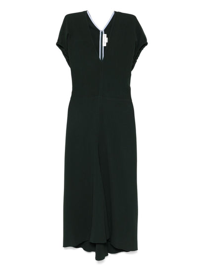 dark green rear zip fastening V-neck short sleeves fitted waistline Midi dress Size and Fit - This piece fits true to size. We recommend you get your regular size. Model is 1,75m / 5ft 8in wearing size 8 (UK)