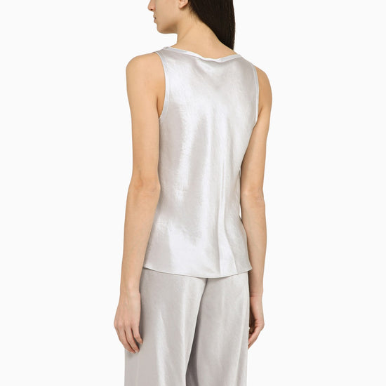 Silverstone-coloured acetate tank top by Vince, featuring a round neckline and raw cut. Size and Fit - Model wears size S Model measurements: Height: 179 cm Chest: 82 cm Waist: 65 cm Hips: 90 cm