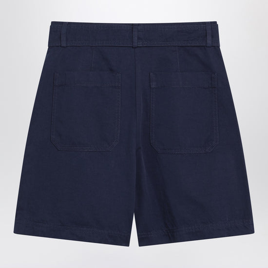 Bermuda by Max Mara Weekend in a blend of linen and cotton blue, characterized by a high waist with a matching belt, front closure with a zip and button, cargo pockets on the front and applied pockets on the back. Size and Fit - Model wears size 40 IT Model measurements: Height: 178 cm Chest: 89 cm Waist: 62 cm Hips: 88 cm