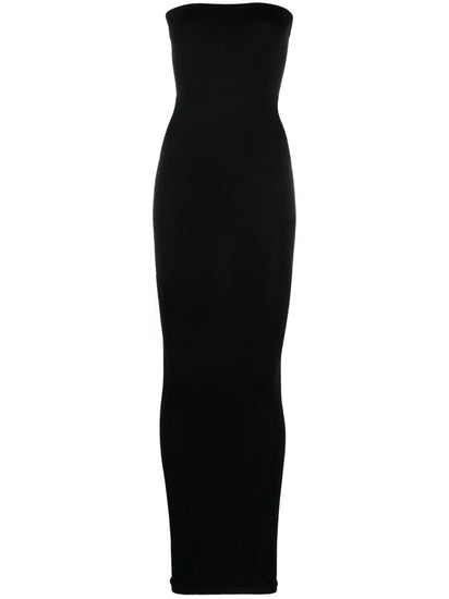 black stretch-design ribbed knit tube design elasticated band strapless sleeveless ankle-length elasticated hem unlined Abito lungo Fatal Size and Fit - LENGTH: 135.0 Centimetres. WAIST: 56.0 Centimetres. BUST: 56.0 Centimetres.
