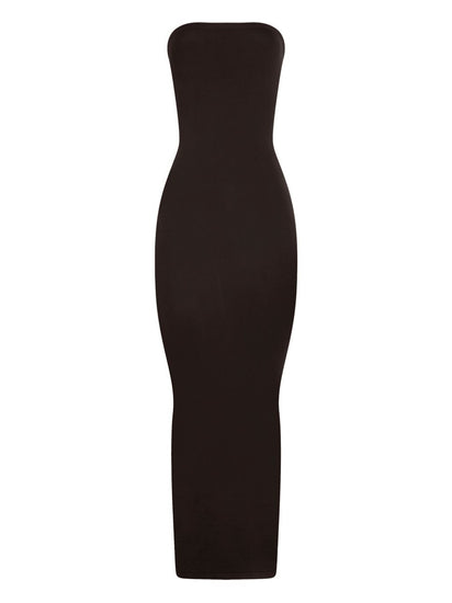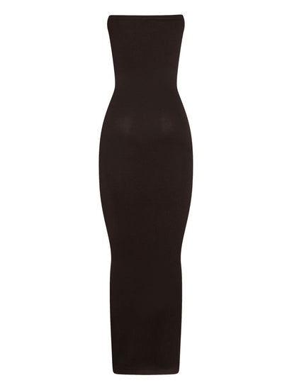 black circular knit strapless neckline seamless construction Abito lungo Fatal
