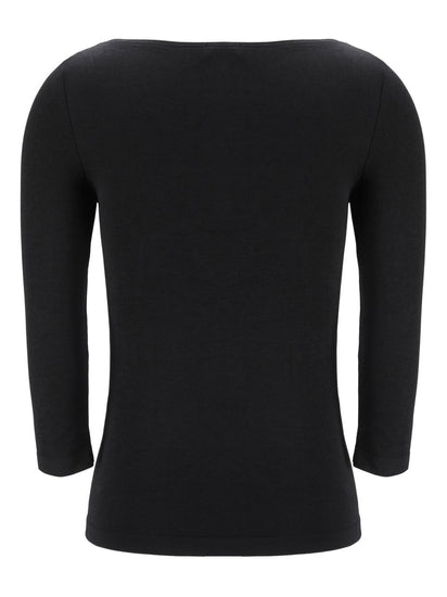 black round neck long sleeves straight hem internal logo patch