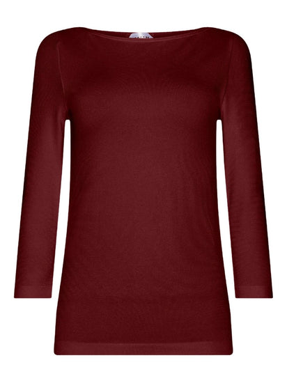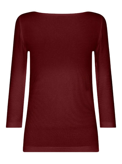 burgundy boat neckline three-quarter sleeves straight hem Boat-neck sweater
