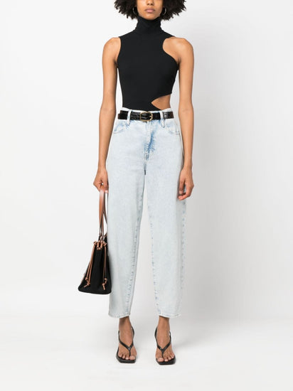 high-neck cut-out body from WOLFORD featuring black, high neck, cut-out detailing, sleeveless, bodycon design and stretch-design. High neck cut-out bodysuit Size and Fit - This piece fits true to size. We recommend you get your regular size. Model is 1,75m / 5ft 8in wearing size S