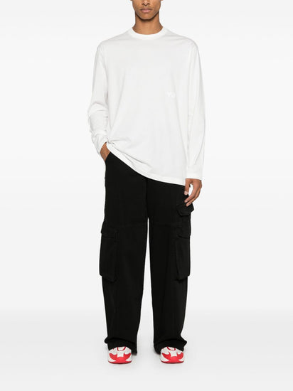 white cotton jersey texture raised logo detail crew neck long sleeves straight hem When buying this unisex item, keep in mind that it is graded in standard men's sizing. Logo cotton t-shirt